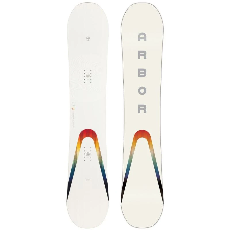 The Arbor Rocker Poparazzi snowboard is the most well-rounded women’s specific shape in the Arbor lineup. It has a smooth, buttery, soft flex and twin shape for freestyle performance and a solid construction for durability. Reliable edge hold is a staple in providing consistent hold on groomers and steeps. Arbor’s System Rocker provides a surfy ride for natural float, smooth turns and spins and allows for catch- free tracking across the snow, it also progressively reduces the amount of rocker toward the tip and tail and allows the outside contacts to easily engage when max edge hold is needed. A Grip-Tech shape uses a tri-radial side cut to provide even toe and heel contact points instilling a more ergonomic way to grip the snow when additional control is needed. The Poparazzi Highland Core is Arbors most versatile, constructed with a 1:2 blend of Poplar and Paulownia woods for super lightweight performance and return. Biax Glassing includes a Triax over Biax lay-up, that’s designed for park and street inspired all-mountain riding. 360-degree fully wrapped sidewalls eliminate the need for tip fill, while effectively tying the package together. This technology delivers an incredibly tight tolerance for improved board life and durability. Add in recycled steel edges which are highly durable and a factory-tuned sintered base for speed and longevity. This board is a great choice for intermediate riders looking for progression and a user-friendly board that you won’t grow out of.