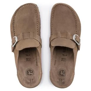 The BIRKENSTOCK Buckley is a semi-open moccasin-style clog that’s instantly recognizable as an authentic BIRKENSTOCK original thanks to its exposed cork footbed. The upper is made from soft suede leather.