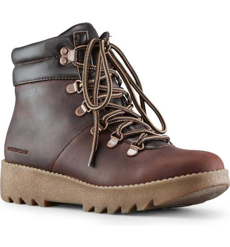 A padded collar and tongue add to the utilitarian appeal of a full-grain leather bootie with a waterproof finish, fleece lining and traction-enhancing sole.