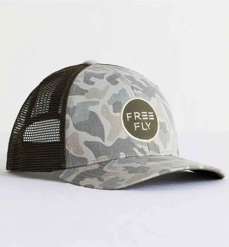 Drift off to hot, sunny days in our classic trucker featuring a camo print inspired by tropical blue waters.