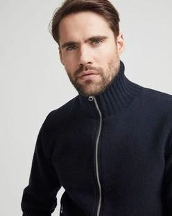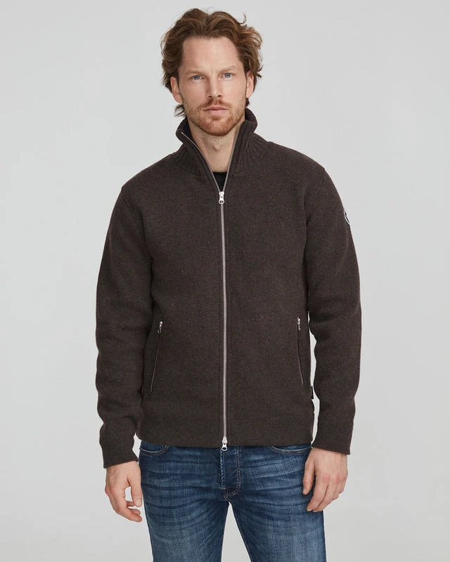 Knitted zip jacket in wool blend with a windproof lining. Two way metal zip with and pockets with metal zip. Straight fit and reinforced cuffs and hem. High ribbed collar with rib knit cotton inside. Elastic windproof lining (97% polyester, 3% elastane).
