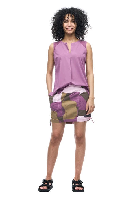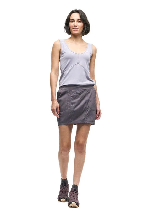 A regular waist skort made of woven stretch fabric that is light, strong and 2-way stretch and offers ease of movement, dries quickly and wicks away moisture. The Ulendo IV skort has an elastic waistband, an inner short, two front hand pockets and a back zipped pocket. These features make this skort versatile, great for hiking, travel and various outdoor activities. Made from OEKO-TEX certified nylon fabric.