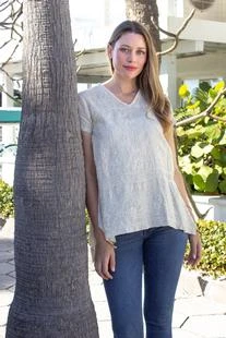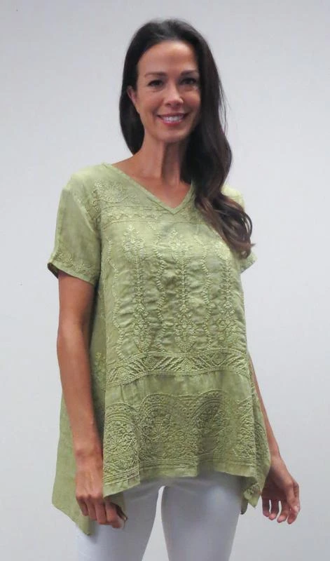 This bohemian-chic blouse features a v-neck collar, short sleeves and delicate multicolored embroidery.
