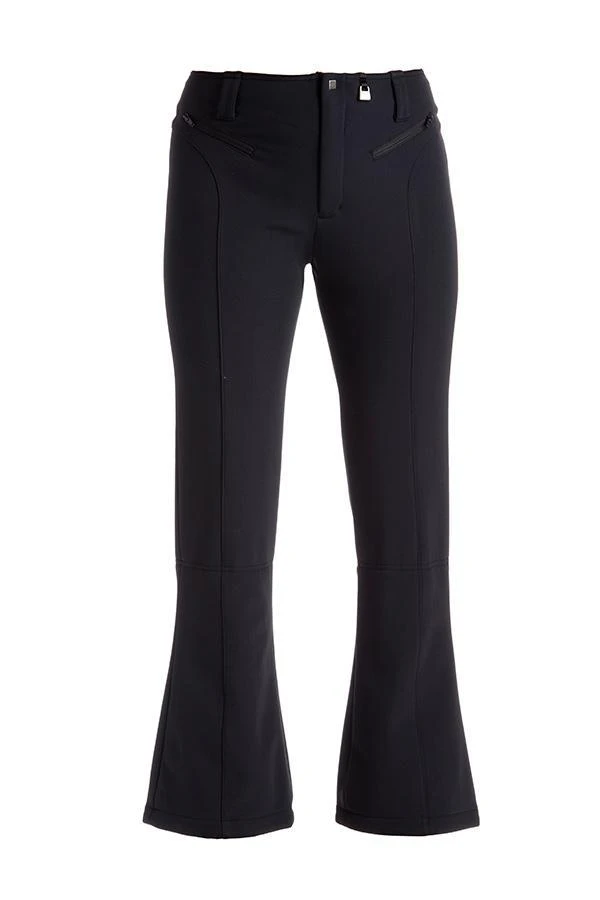 4 way stretch mid rise, slim fit pant with jean styling. belt loops, front pockets and zippered gusset in back of leg. Waterproof/Breathable rating 20/10.