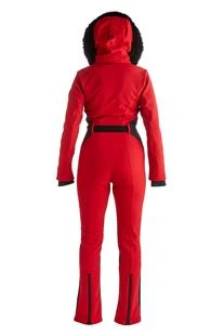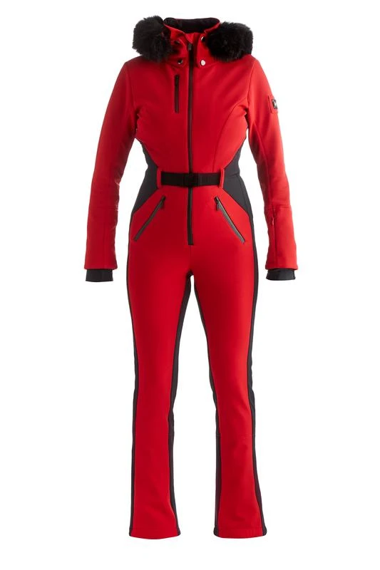 Slim fit, 4-way stretch ski suit in Dermizax fabric with adjustable belt and YKK waterproof zippers. Waterproof/ Breathable rating 20/10.