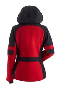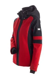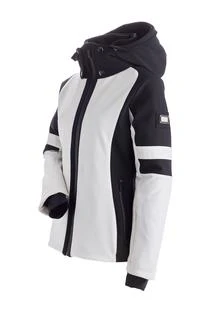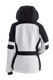 Sporty 4 way stretch ski jacket with stripe detail on sleeve. Black hardware and YKK waterproof zippers. Waterproof/ Breathable rating 20/10.