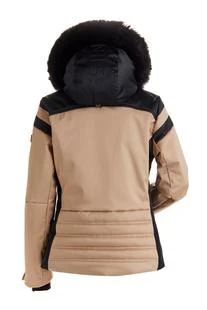 Sporty 2 color hip length jacket with quilted detail on lower body. 4-way stretch fabric with gunmetal hardware and YKK mirror-like zippers. Waterproof/ Breathable rating 20/20.