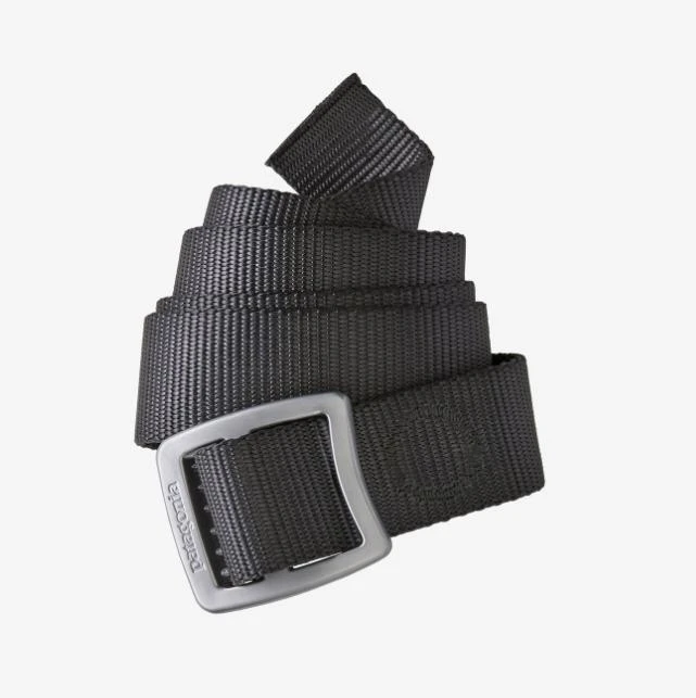 Burly, recycled nylon-webbing belt with an aluminum buckle can be used in a pinch as a lash strap or bottle opener.