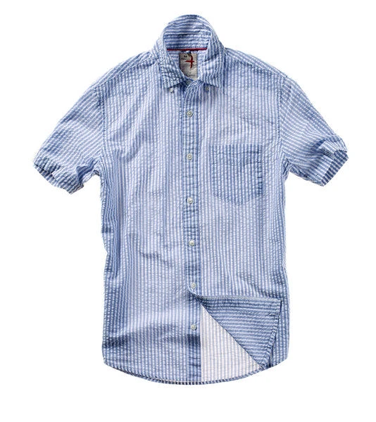 Seersucker is a must-have staple of any proper summer wardrobe. Our lightweight seersucker weighs in at 95 grams per square meter. The magic of seersucker is that cotton is an infinitely breathable material, and in the case of seersucker, the fabric never wholly touches the skin—and never the lower arms in this scenario.