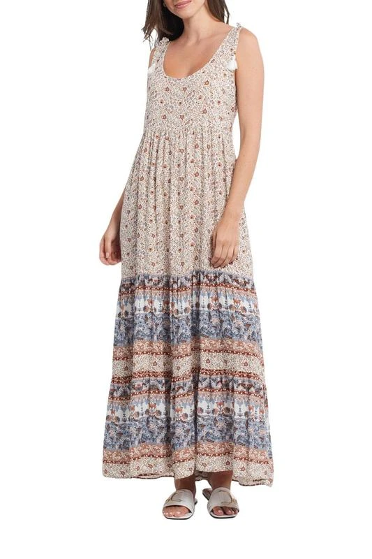 We love maxi dresses for their easy comfort and chic boho-vibe and this stylish piece is at the top of our shopping list this season. We’re loving the tassel tie straps and the pretty printed border along with the figure-flattering shirred waist and scoop neck, giving us all the reason we need for wearing this dress on repeat.