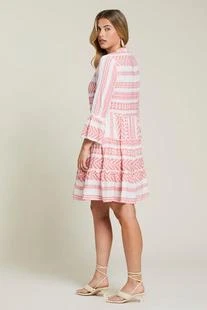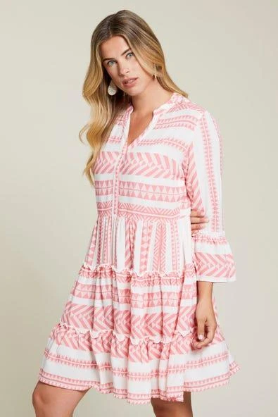 With a silhouette this flattering, you’d think this dress was custom-made just for you. We’re loving the flattering fit, patterned crepe fabric, three-quarter sleeves with a flared edge, notched neckline, and 37″ length. It brings stylish design to your closet with the comfort your life requires.